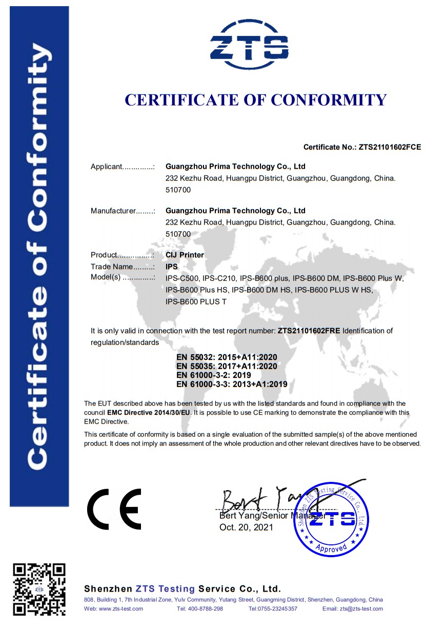 CE Certificate for IPS-C500 CIJ Printer